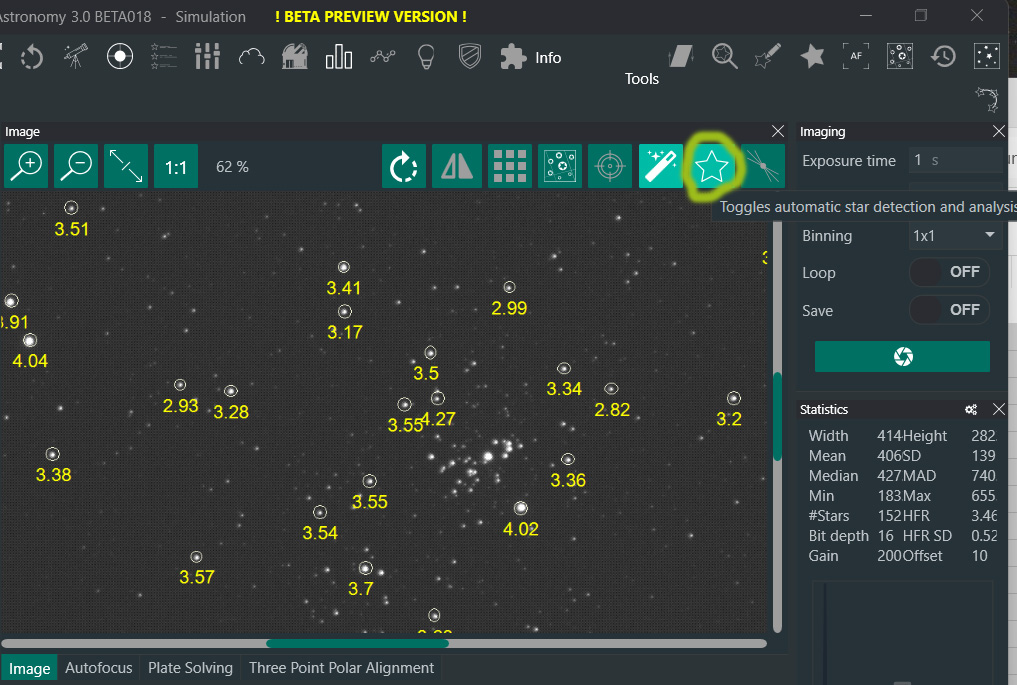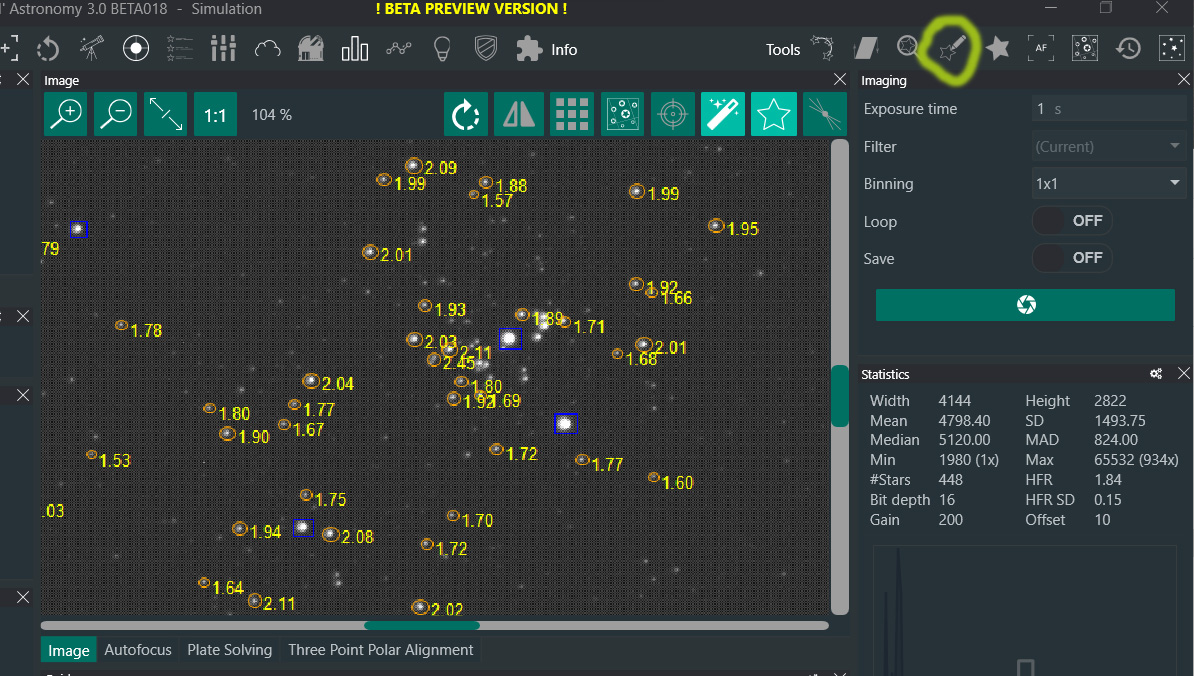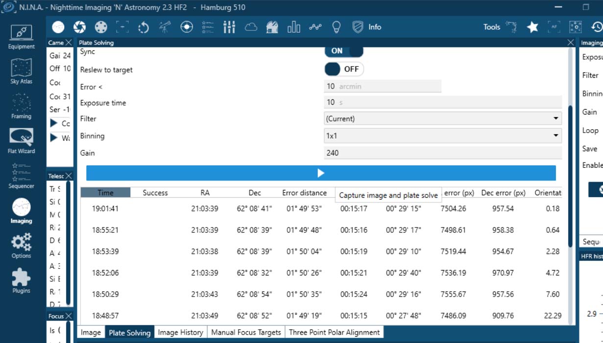 Nun macht der Dwarf Drehbewegungen und schiesst Fotos vom Sternenhimmel, die wohl geplatesolved werden, um ein Alignment-Modell zu erstellen.
