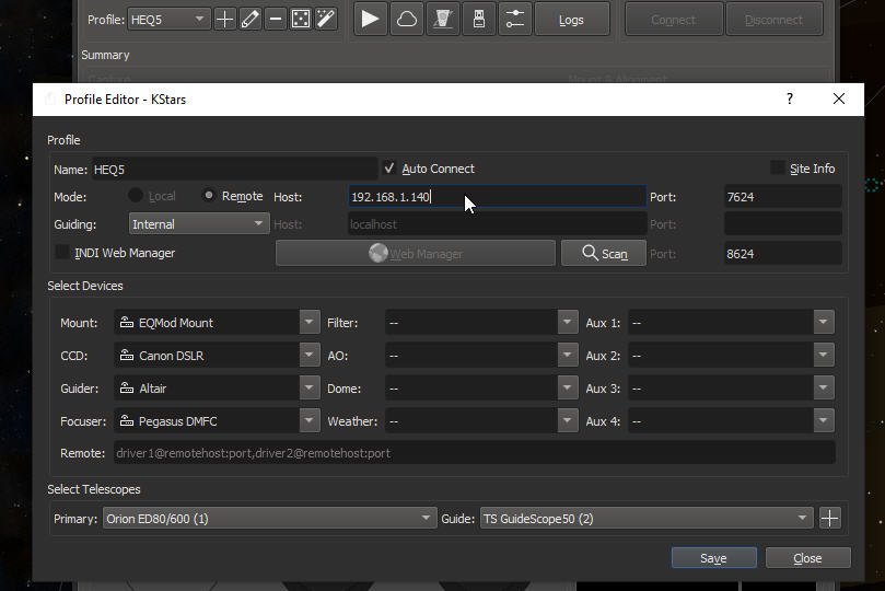 Damit ich selber mal lerne, wie das mit dieser für mich neuen Software funktioniert, versuche ich es mit einem eigenen Fall. Ich habe gerade kürzlich (am 20.9.2020) eine Aufnahme vom Pacman-Nebel mit 60 Lights á 120 sec und 30 Darks (keine Flats und keine Biases) gemacht.